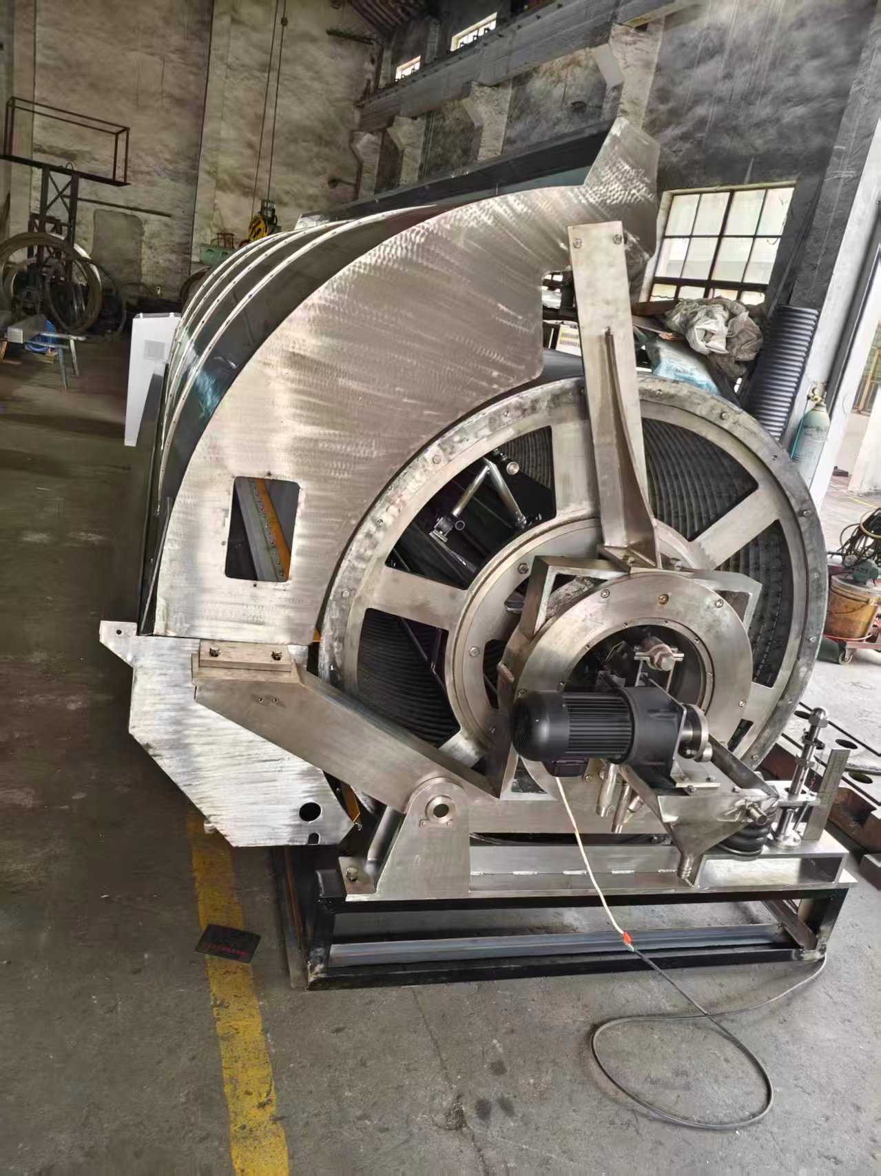 Untuk menyediakan isipadu yang boleh menampung lebihan air di dalam roll dandy, roll dandy mesh dua lapisan baharu telah direka bentuk. Mula-mula, balut lapisan mesh yang sangat tebal, dan kemudian balut lapisan lain 35-40 mesh dawai keluli tahan karat . Mesh diperbuat daripada jahitan lingkaran dan hampir keseluruhannya diperbuat daripada bahan keluli tahan karat. Lebihan air yang tersimpan di antara celah mesh roll dandy mesti dikeluarkan, biasanya dengan menggunakan air semburan dalaman. Dulang pengumpulan air terletak di bahagian hulu gulungan dandy. Terdapat peranti pengedap di bahagian bawah cakera untuk mengelakkan kebocoran air. Air yang dikeluarkan hendaklah disalirkan tepat pada masanya. Terdapat port saliran pada kedua-dua bahagian hadapan dan belakang mesin kertas lebar yang besar.